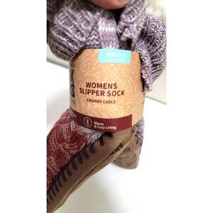 Muk Luks Womens Slipper Sock S/M Chunky Cable Knit Cozy Lining
