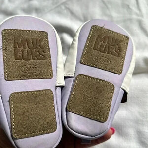 Muk Luks baby soft shoes purple and white with bow 12-18 months