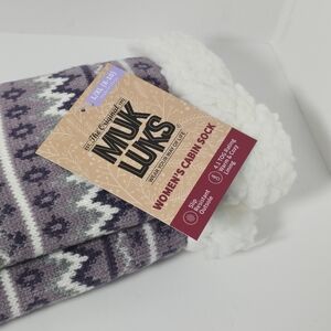 Muk Luks navy multi sherpa lined slipper socks womens L/Xl nwt