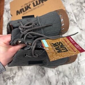 Muk Luks size 8 Dark Grey Heather Gray Slip ok Booties Boots NWT New in box