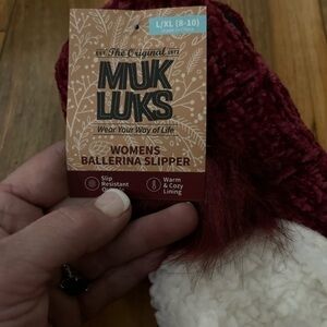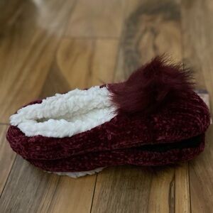 These Muk Luks wine colored slippers are NWT and are so soft with a chenille outer and soft faux fur lining. They also have anti-slid grips on the bottom to keep you from slipping. Two sizes available. What a great gift for home or gift exchange at work, stocking stuffers, etc. Or maybe get them for yourself - Everyone needs a little retail therapy from time to time. The price on these is very reasonable and I have little room for change, but if you would like to make a reasonable offer, rather than buy outright, please do, I will go as low as I can. Thanks for visiting my closet. Please share and follow! (S-TO)