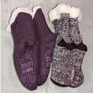 Muk luks socks 2 pair plum color sherpa lined cabin socks non slip