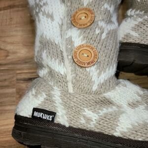 Beautiful white and cream shearling lined knit boots with hard bottoms NWOT and winter snowflake print by Muk Luks Size 9