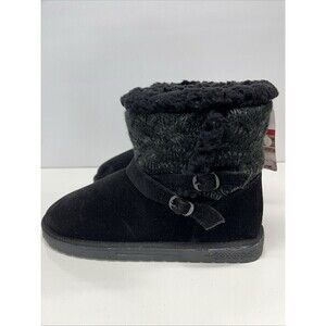 MukLuks Boots Womens 9 Alyx Winter Ankle Booties Ebony Faux Suede Fur Pull On