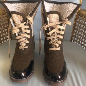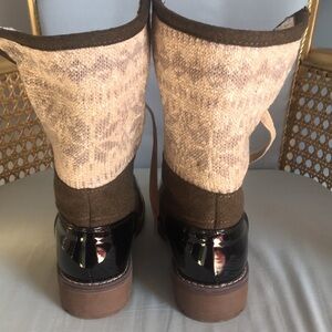 MukLuks army green & black lace up trendy combat boots sweater ankle tube size 7