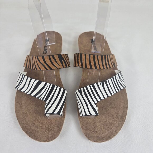 Mukluks Size 8 Mixed Zebra Print Slip On Sandals Faux Leather Animal Print NWOT
