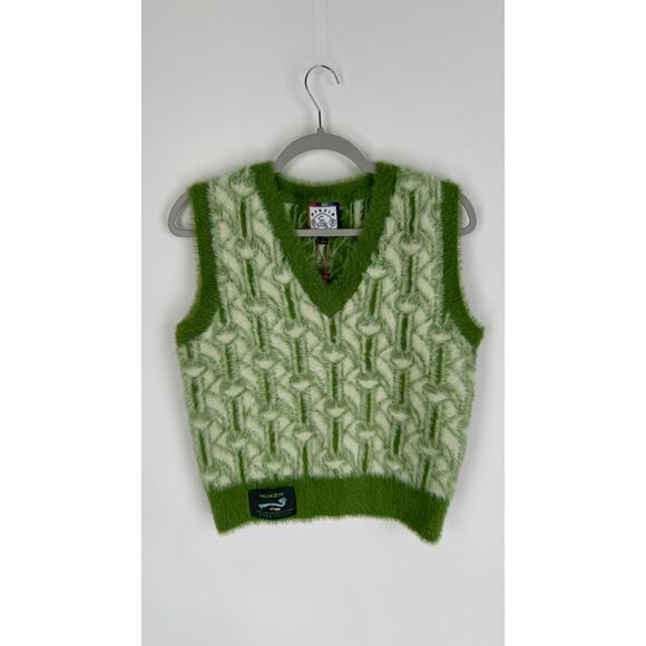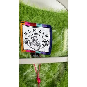Mukzin Green Fuzzy Eyelash Sweater Vest Womens Small New V Neck Sleeveless