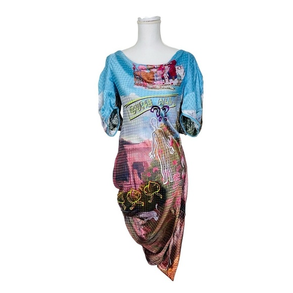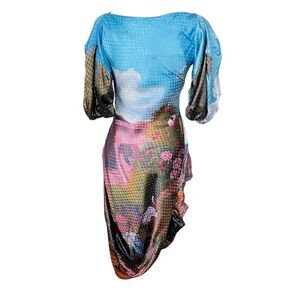 NEW With Tags Mukzin "Cure All ??" Balloon Sleeve Asymmetric Midi Dress