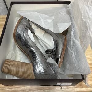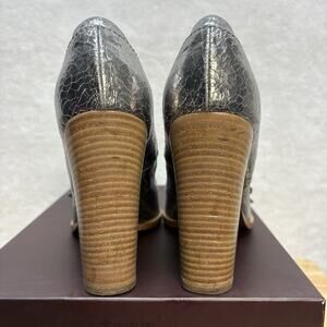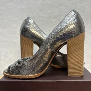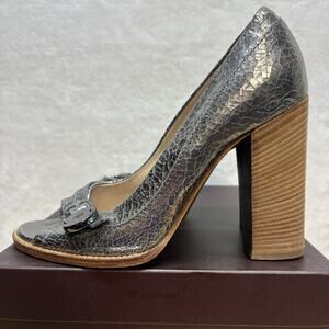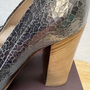 Mulberry Bayswater Peep Toe Cracked Metallic Silver Block Heel Pump EU Size 38.5