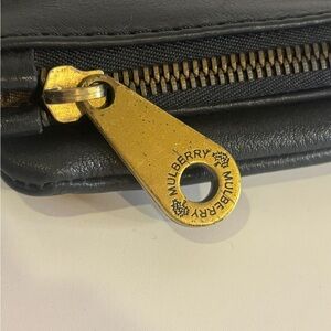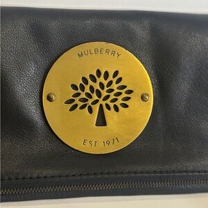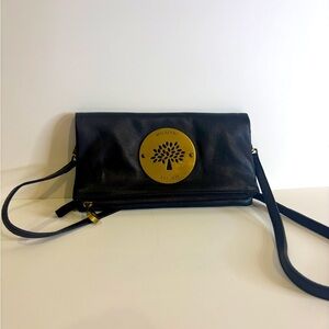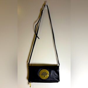 Mulberry Black Leather Crossbody Clutch – Gold Tree Logo Medallion – Classic