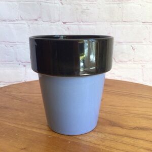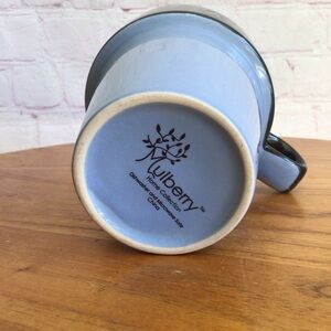 Stylish ceramic black and blue tea mug. Perfect for hot beverages. Made by Mulberry Home Collection. This mug is dishwasher and microwave safe. Measurements are approximately 4 1/2” tall, 5” wide including the handle. Great pre-owned condition. No chips, cracks or repairs. Smoke free home.