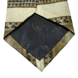 Beautiful men's Mulberry necktie in cream, brown and black. Hand sewn in Italy, Made in USA. 100% Silk. Due to light & screen variations, colors may vary slightly from the images