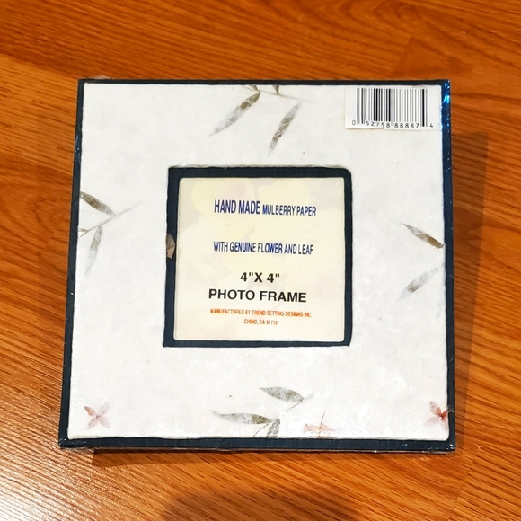 New, unopened handmade mulberry paper with genuine flower and leaf 4×4 photo frame - smoke free home