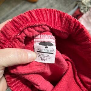 These Mulberry bottoms feature a vibrant red hue and a relaxed, casual fit, perfect for everyday wear. The corduroy fabric adds a touch of texture with its distinctive vertical ridged pattern, while the elastic waistband and cuffs ensure comfort and ease of movement. Ideal for a laid-back look, these cropped bottoms are a stylish addition to any wardrobe.