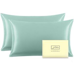 Two standard size silk pillowcases made from breathable mulberry silk, which is beneficial for keeping skin and hair hydrated.