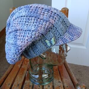 Mulberry Slouchy with a Brim handmade crochet ready-to-ship newsboy OSFM premade