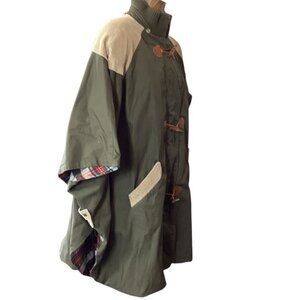 Mulberry Street Poncho Jacket Khaki Corduroy Flannel Lined Canvas Toggle L #121i