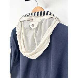 Mulberry Street Vintage Navy Blue and White Striped Front Zip Hooded Jacket Size M