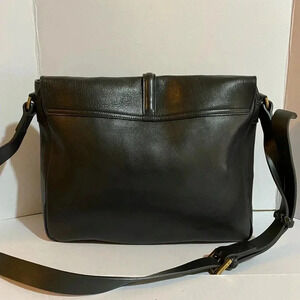 Mulberry Unsex black leather messenger bag with main compartment 2 pockets at interior wall 3 pin slots fabric & leather lining inside missing money clip hardware minor scratches hight 14.25”width 17” depth 3.25”strap drop 22.25” adjustable The dimensions are based on approximately measurements before placing an order please check take a moment to view all photos using feature for a closer look