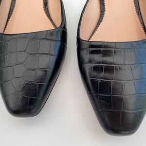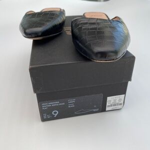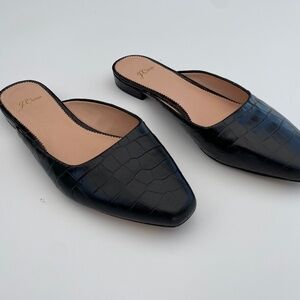 Minimalist black croc leather mule in size 9 (EU 39 1/2). Flat. JCrew. Heel height 1/2 inch.