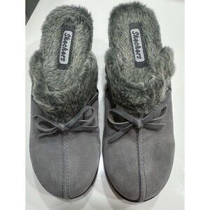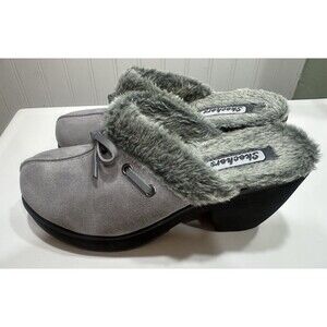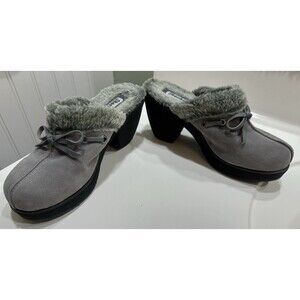 The Mule Clogs Chunky Heel Leather Faux Fur Clogs Shoes by Sketchers are a stylish and comfortable option for women in size 8.5. These slip-on clogs feature a solid gray color with a faux fur lining, creating a cozy and trendy look. With a high chunky heel and faux leather outsole, these shoes are perfect for casual wear and add a touch of snow bunny character to any outfit. Made by the trusted brand Sketchers, these clogs are a fashionable choice for those looking for comfort and style. Size tag is missing. These were measured and size determined using a conversion chart.
