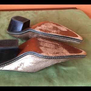 Pewter distress metallic calf hair, leather sole/ western couture collection