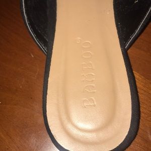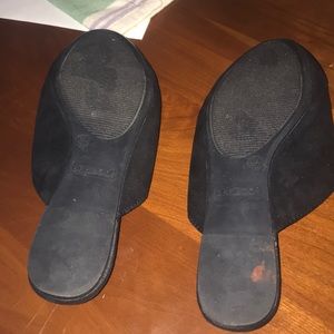 These are back miles with silver detailing. Worn a couple of times. In good condition! A suede-like material with a chain. Super cute and comfy :)