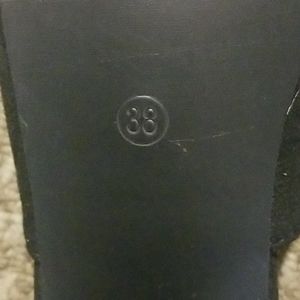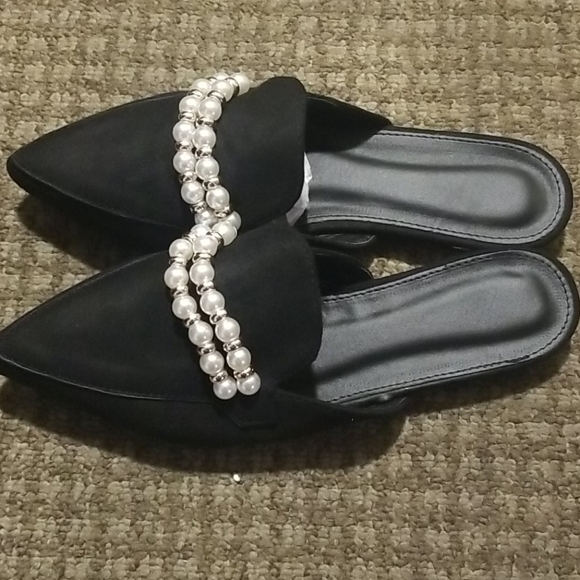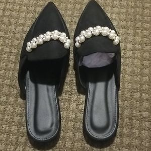 Suede Mules with Pearl Details, Gold trim around the heel, NWOB, NWOT, shoes come with dust bag, shoes fit size 7.5