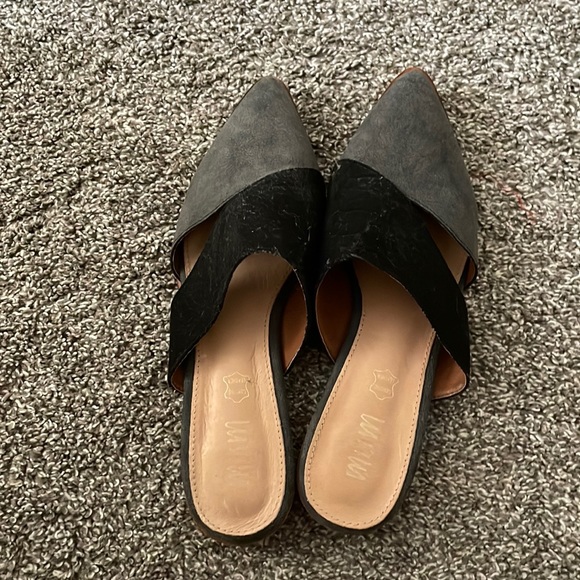 Grey and black mules