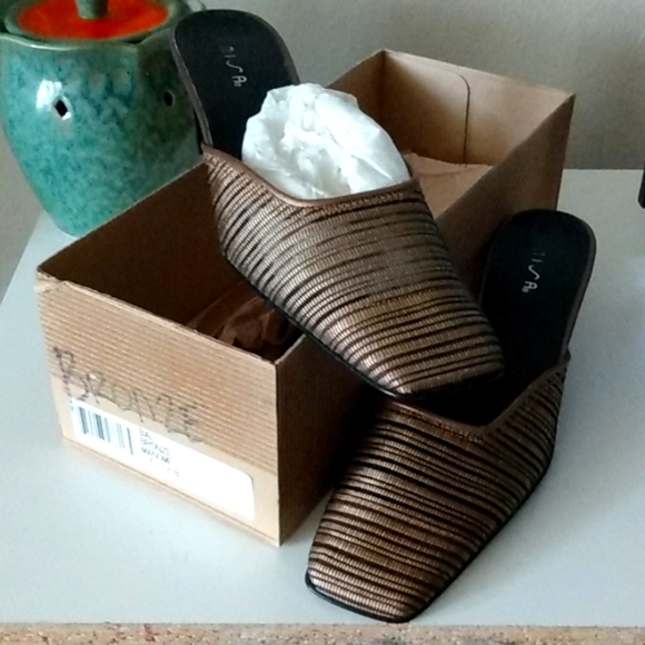gorgeous bronze mesh mules. barely worn with original box. Bali style.