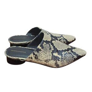 Anthropologie Snake Print Mules Slip-On Flats Women’s Pointed Toe Beige Brown EU 36/US 5.5.