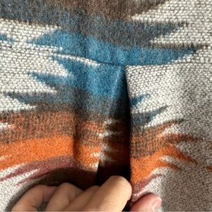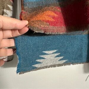Mulla "Jackson" shacket, size Sm., Aztec print, hi-lo, raw edge, blue/rust