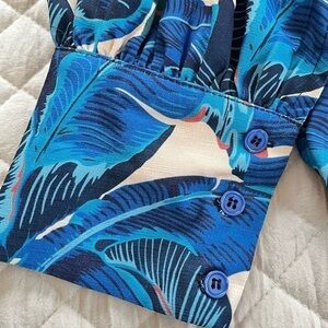 NWT Mulla button down blouse. 3 buttons on the cuff. Slight puffy sleeves. 2 breast pockets. Beautiful blue leaf print.