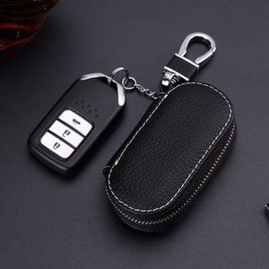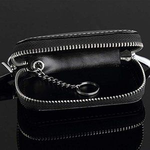 Car Key Holder Genuine Leather Case with Stainless Steel Hook Remote Key Fob Case with Metal Zipper Keychain Suit for Men Women, Protect your car key or Fob with stylish leather key pouch, never misplace your keys again , simply attach to your belt hoop, purse, computer bag, etc. choose your car's make, pick Black