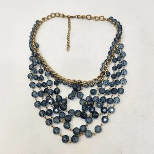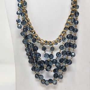Multi Chain Layered Faceted Blue Bead Necklace Collar Statement Costume Jewelry