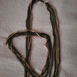 Multiple chains and metals. Very long 48in total length. In pictures I've doubled the necklace in different styles.