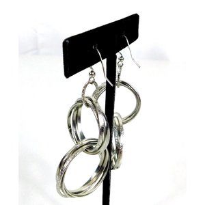 Multi Circle-Link Interlocking Hoops Polished Textured Dangled Pierced Earrings