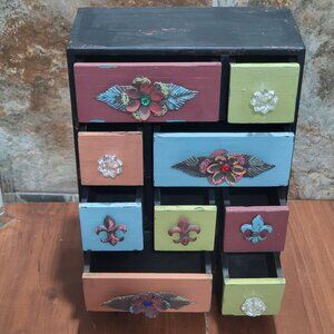 Multi Color 9 Drawer Wood Cabinet Small Chest Box Desk Organizer