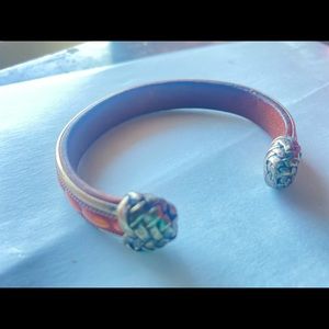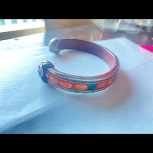 This beautiful bangle has multiple colors while the inside has leather for your comfort can be easily adjusted to any size wrist 🤎❤️💫