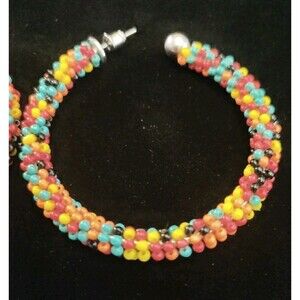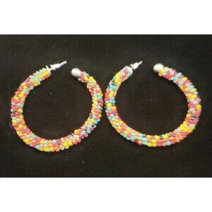 Multi Color Bead Hoop Earrings 2" Pierced