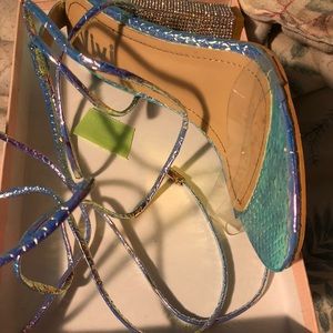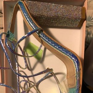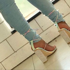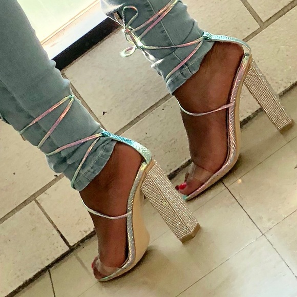Multi color block heels, with strapped laces. Only worn to take pictures in. I can’t walk in heels lol.