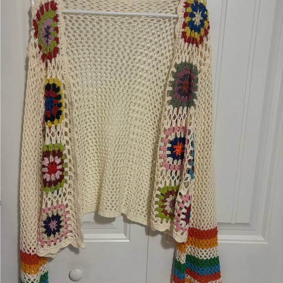 NWOT super cute and colorful cardigan, gorgeous colors with bell style sleeves. Could wear this with so many things and look amazing. Super fun Boho style. 😊