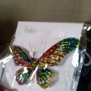 Gold metal and multi color rhinestone elegant butterfly brooch pin. Pin closer. 1