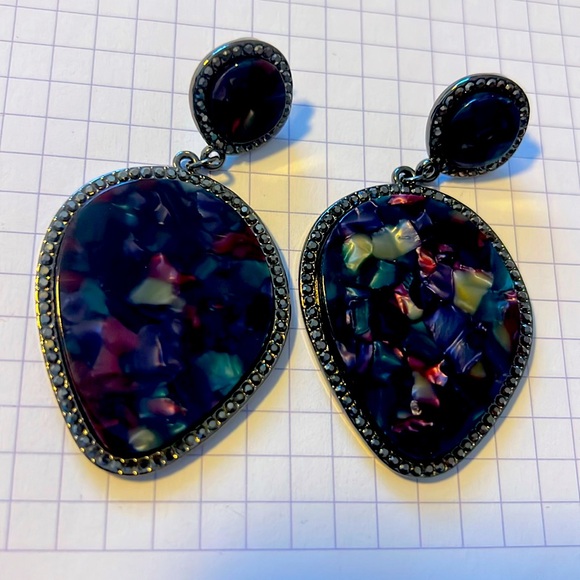 Multicolor pierced earrings in shades of purple, gray, teal. Never worn.