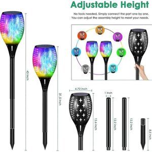 🧿EASY TO INSTALL: Simply connect the solar outdoor flame lights and pipe, stick it in your yard, pathways, pool, garden, bench, patio, fence, deck, or outdoor events like parties, camping, barbecue, wedding, Christmas, Halloween, Thanksgiving. If the ground is too hard, do not twist or hammer it with force. Try to soften the ground with water and then insert into the ground