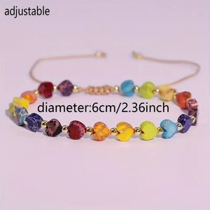 Multi Color Jasper Natural Heart Stone Beaded Bracelet Anklet Braided Adjustable