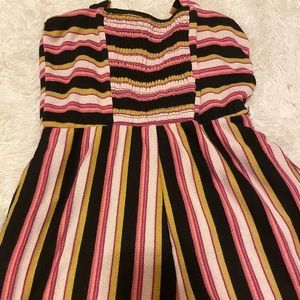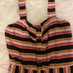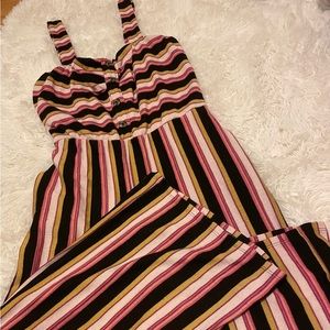 Pink, Black, White, and Yellow Jumpsuit. Wide leg pants and tank top sleeves. In good condition