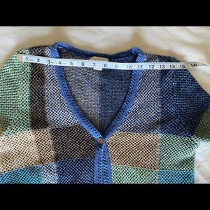 Adorable 3/4 sleeve knit cardigan. She buttons at the top featuring a cute little coconut shell button. I love this cardigan but it’s too small on me now! Only wore her a few times, hoping to rehome this artsy gal! :)