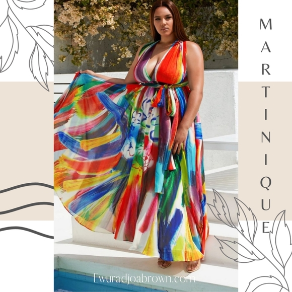 Gorgeous graffiti art maxi features a sexy halter neckline that crosses at the back and wraps around the waist to tie into a flowing bow. This multicolor open back maxi is sure to turn heads in the eye catching piece.
