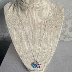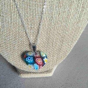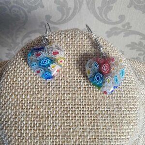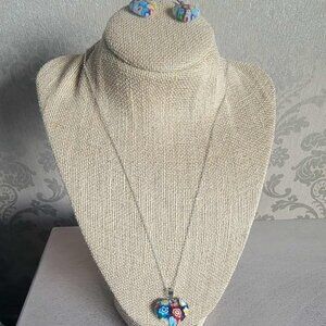 Very pretty multi color heart shaped Murano style necklace and earrings set. On stainless steel.